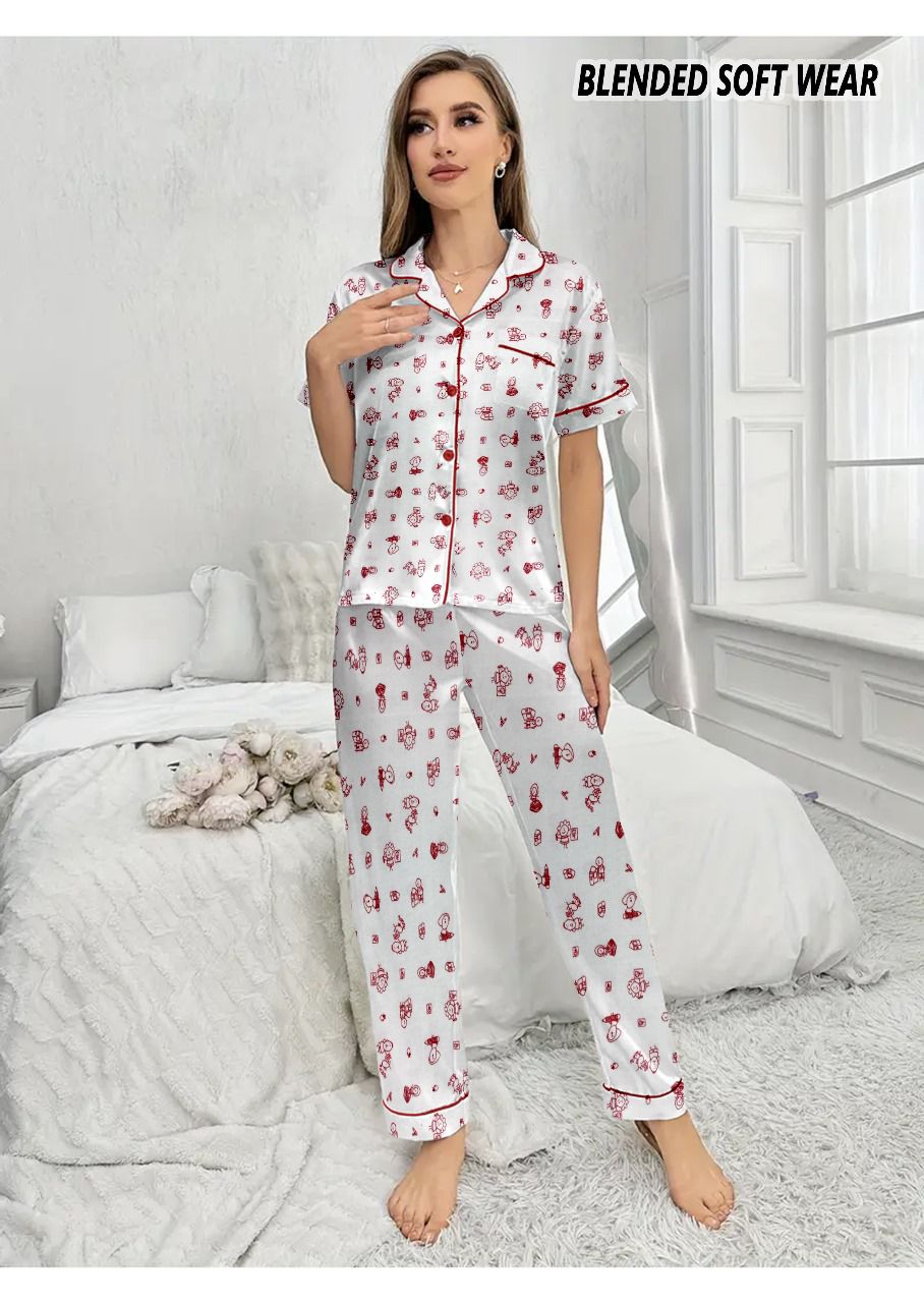 White Printed Blended Trouser shirt